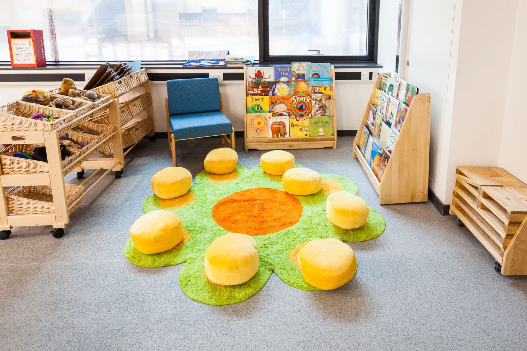 Creating a calm, welcoming space for children to quietly read and think is important. A cosy, quiet place can be created with soft seating to encourage curling up with a book or a soft and comfortable mat that will help create a relaxing area for story time. Have fun with this space, there are so many options for themes and furniture that can really boost the space such as bean bags, canopies, and cushions.