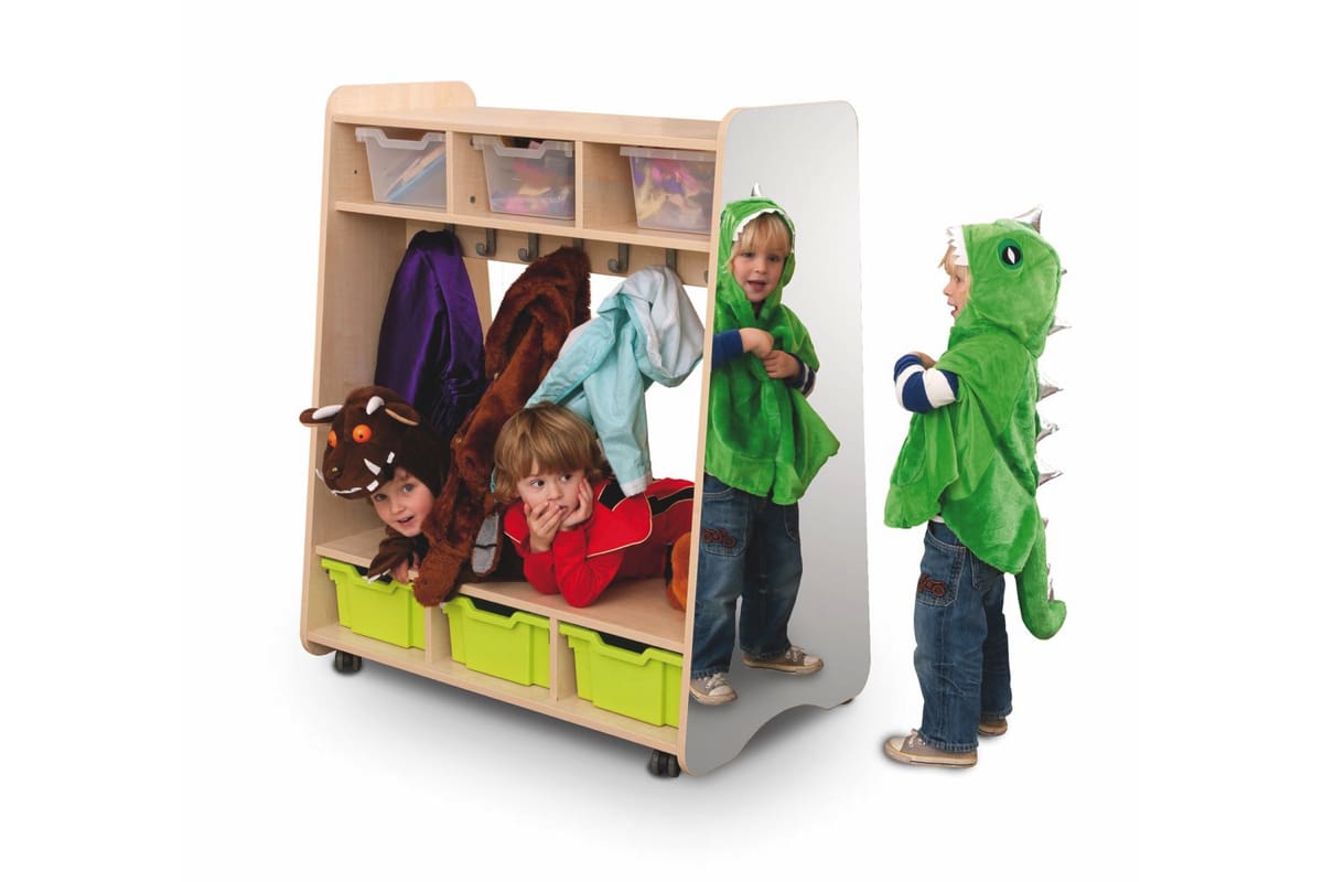 A play area enables children to explore and make sense of the world around them and use and develop their imagination and creativity. The classroom will need to store clothes and dress-up props, and the appropriate child height furniture is a must. Dressing-up helps children to begin to make sense of the adult world, roles, and interests, as well as boosting social interaction. Similarly, furniture that is flexible and can become anything from a kitchen to an office, to the doctor’s surgery or the hairdressers, to let their imaginations run wild.