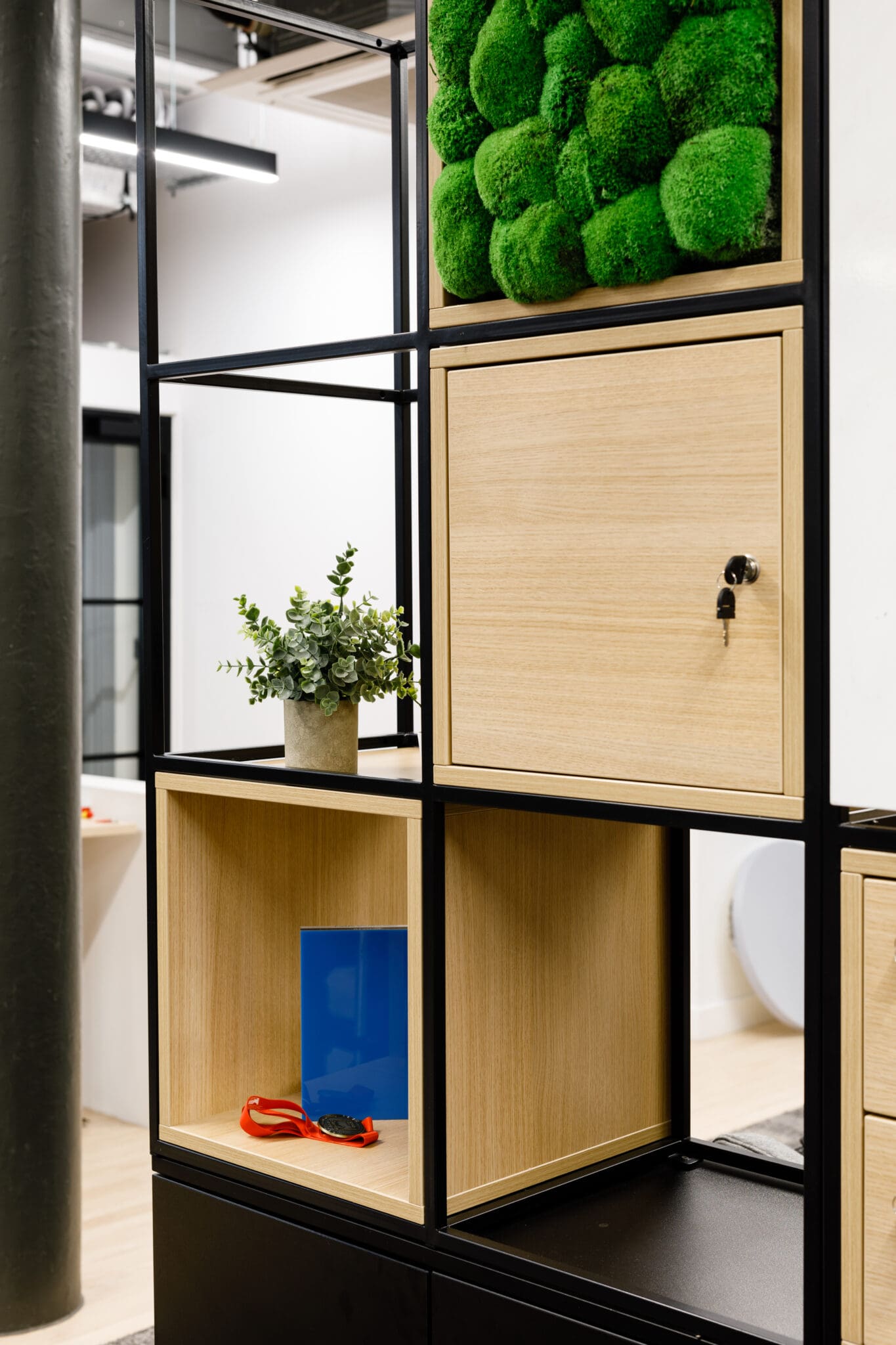 Most of the furniture and features around the office are made from raw materials without harmful VOC coatings, using recycled and recyclable materials. The aim of this was to permanently and sustainably conserve the various natural materials that can be reused several times.